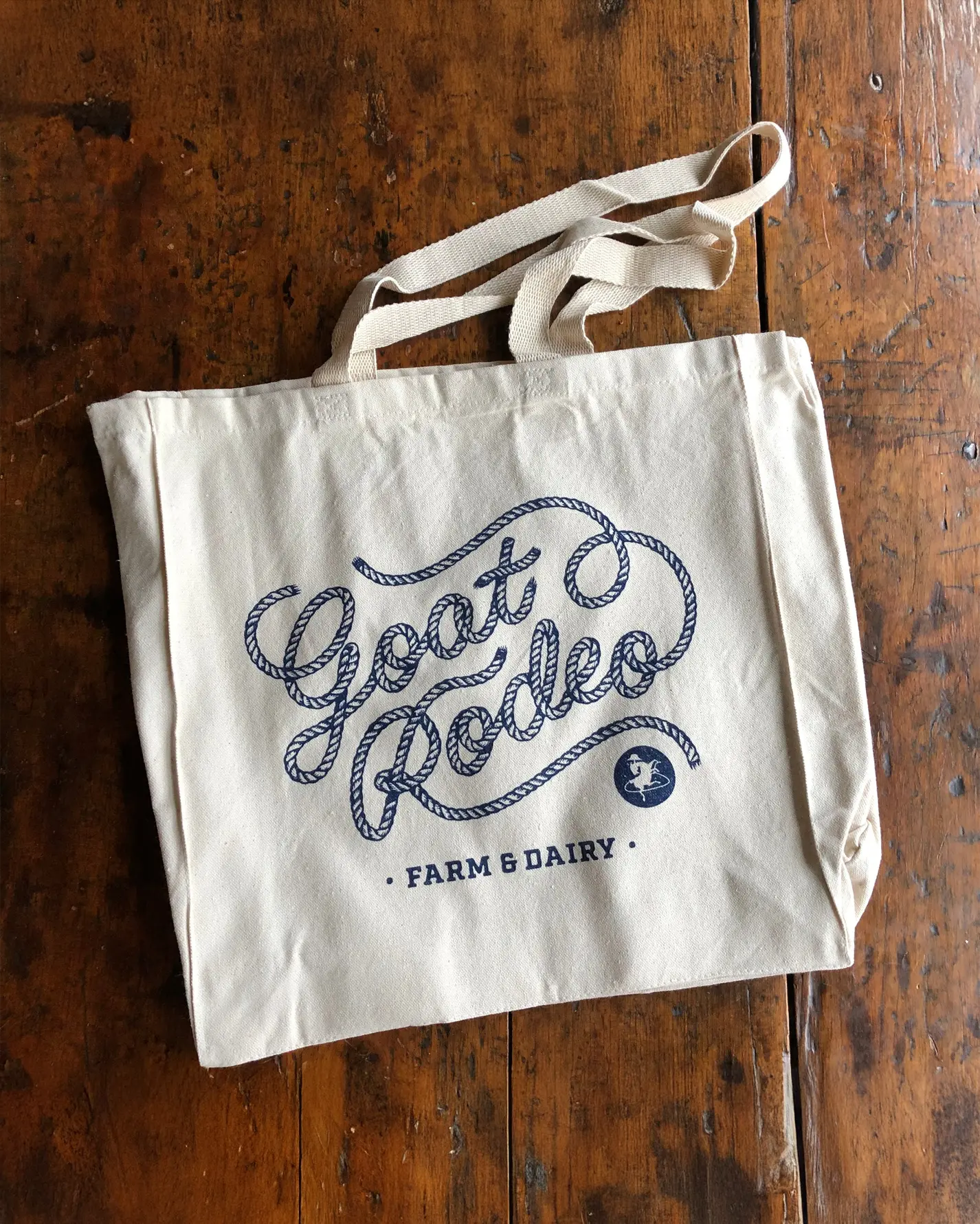 Sturdy 100% cotton canvas tote featuring Goat Rodeo Farm & Dairy logo. Perfect for your trip to the market!