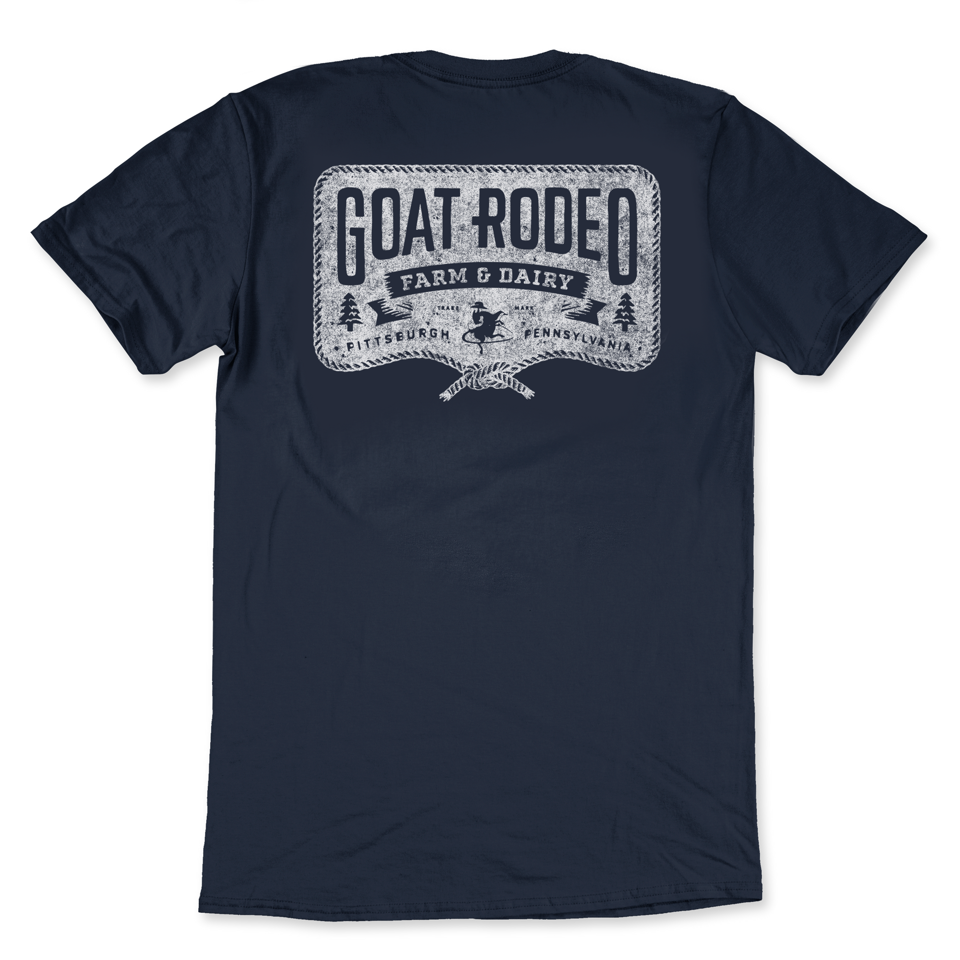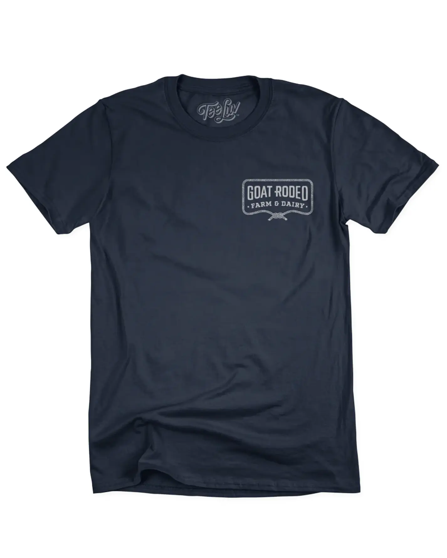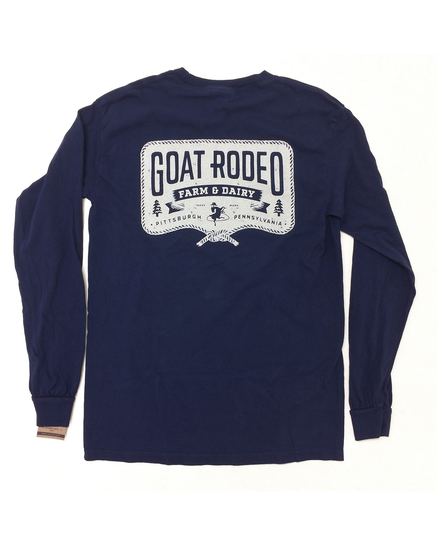 Goat Rodeo Farm & Dairy left chest and full back logo printed on a 100% cotton Comfort Colors. Available in short or long sleeve options.