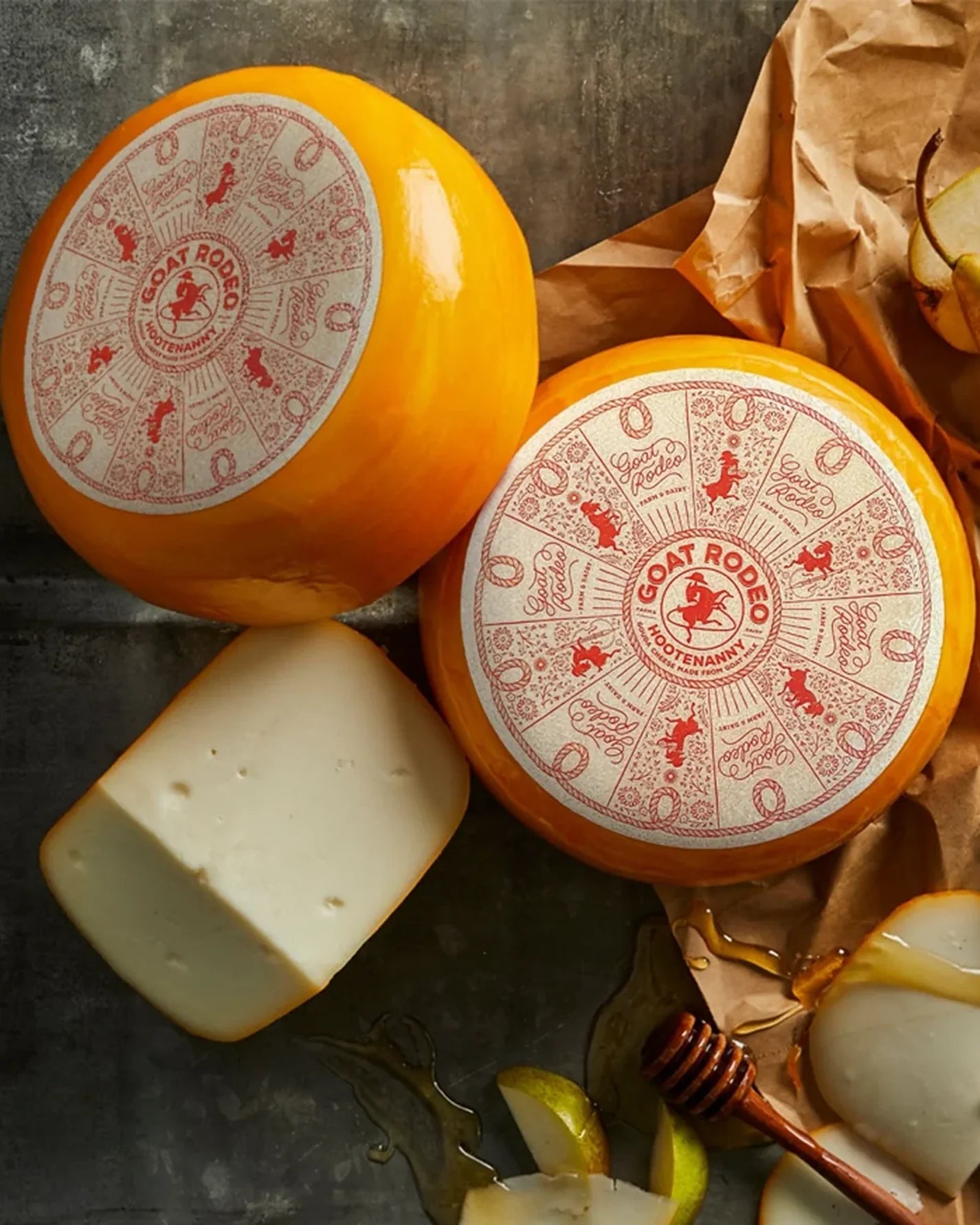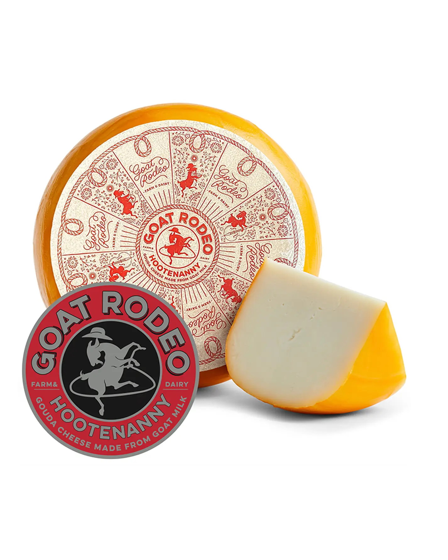 A goat’s milk Gouda cheese made from spring and summer milk. Supple with notes of hickory nuts and wild flowers within a beautiful cream wax rind. Pairs well with crisp white wine or an amber ale. Available in 9 pound wheels.